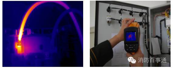 紅外熱像儀是利用紅外探測(cè)器和光學(xué)成像物鏡接受被測(cè)目標(biāo)的紅外輻射能量分布圖形反映到紅外探測(cè)器的光敏元件上,從而獲得紅外熱像圖,這種熱像圖與物體表面的熱分布場(chǎng)相對(duì)應(yīng),圖35。通俗地講紅外熱像儀就是將物體發(fā)出的不可見紅外能量轉(zhuǎn)變?yōu)榭梢姷臒釄D像。熱圖像的上面的不同顏色代表被測(cè)物體的不同溫度。在消防監(jiān)督檢查工作中一般用于測(cè)量電氣火災(zāi)隱患。